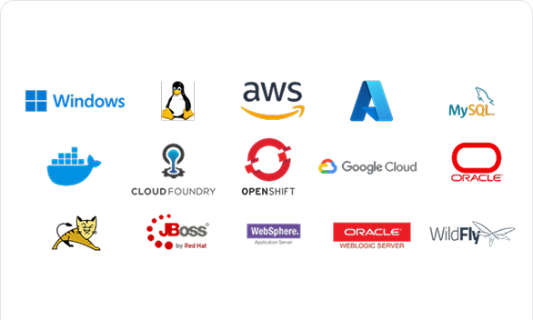 Works with Various Cloud Platforms, Application Servers, Databases and Operating Systems